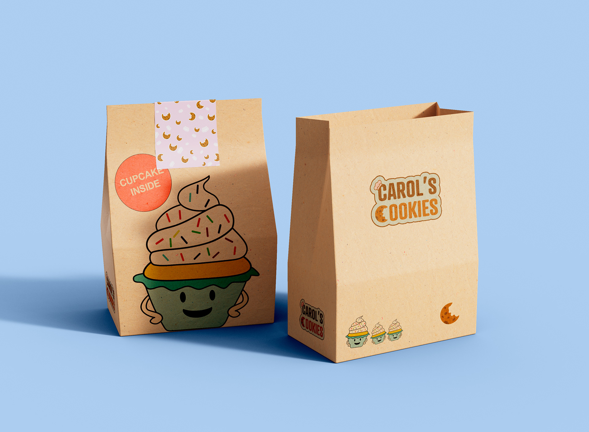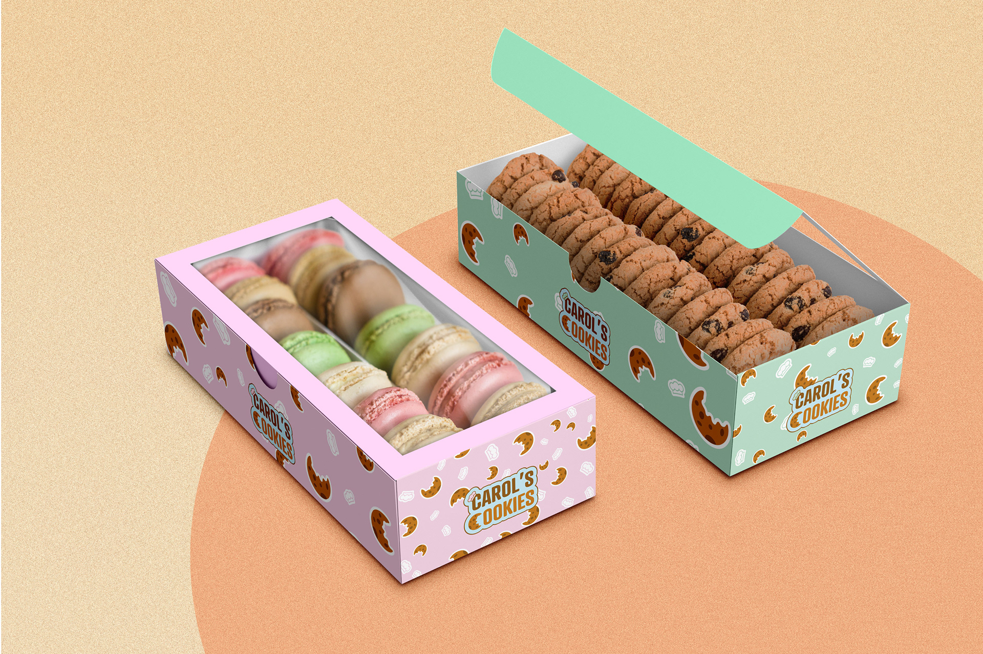 Carol's Cookies offers a variety of delightful treats, specializing in cookies and other baked goods. The goal is to redefine the brand by highlighting the significance of the cookie and the chef's hat. By showcasing a vibrant color palette for the packaging, the brand aims to create a more family-friendly image.